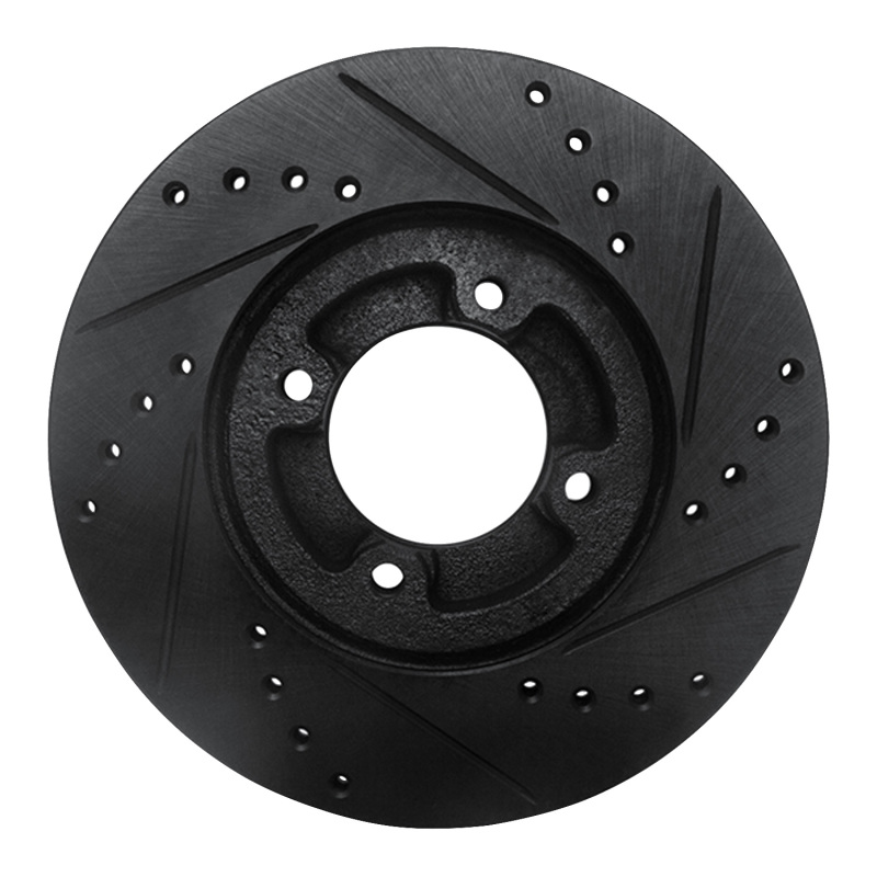 R1 86-89 Toyota Van Front Left Drilled & Slotted Black Brake Rotor ECB-76103L