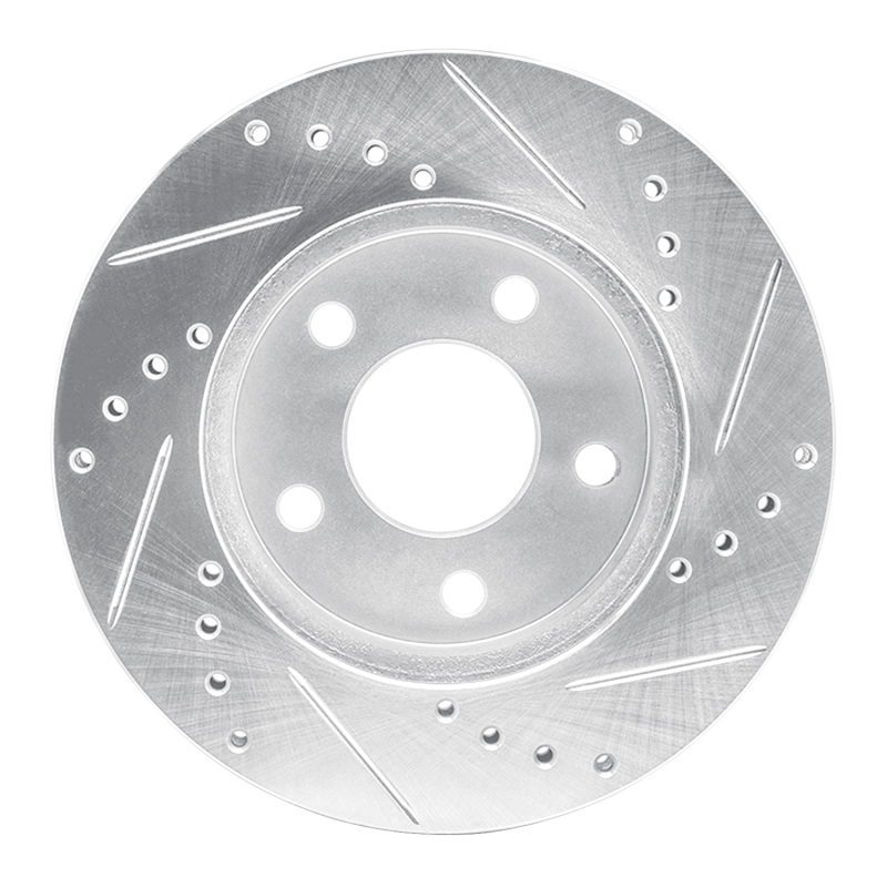 R1 86-92 Ford Taurus (Excl SHO) Front Left Drilled & Slotted Silver Brake Rotor