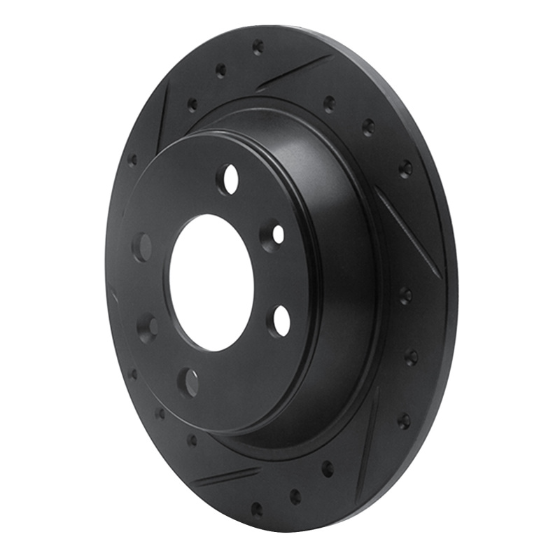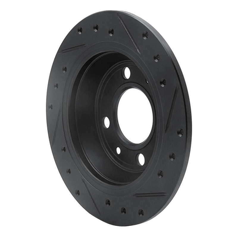 R1 86-98 Saab 9000 Rear Left Drilled & Slotted Black Brake Rotor