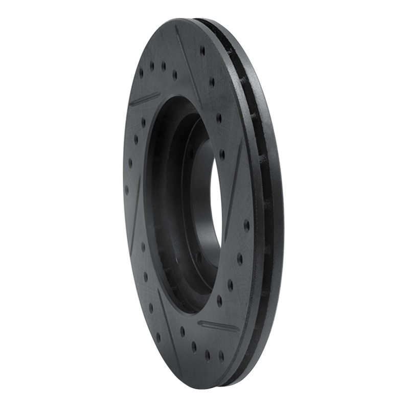 R1 87-99 Hyundai SCoupe Front Left Drilled & Slotted Black Brake Rotor