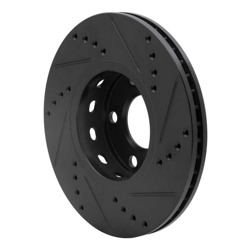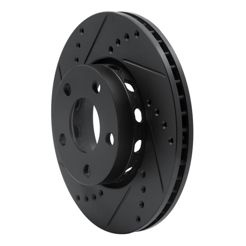 R1 90-97 Audi S6 Front Left Drilled & Slotted Black Brake Rotor