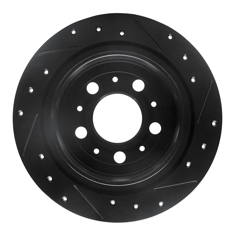 R1 97-98 Volvo V90 Rear Left Drilled & Slotted Black Brake Rotor