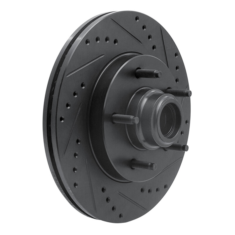 R1 97-99 Ford F-150 RWD Front Right Drilled & Slotted Black Brake Rotor ECB-54145R