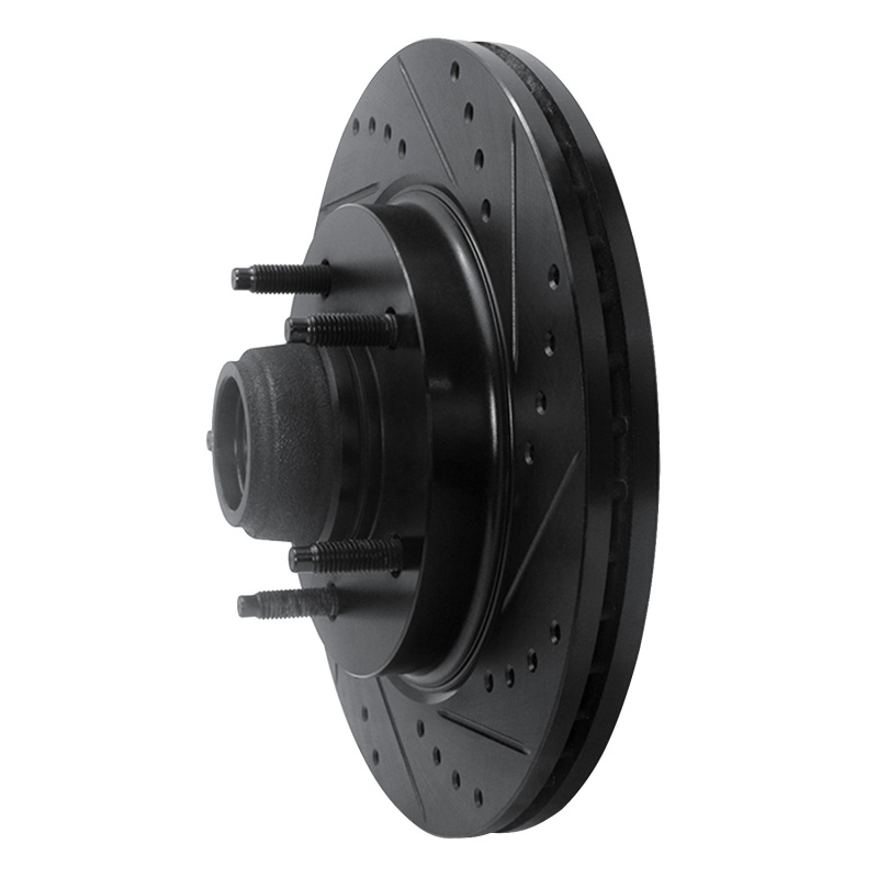 R1 97-99 Ford F-150 RWD Front Right Drilled & Slotted Black Brake Rotor