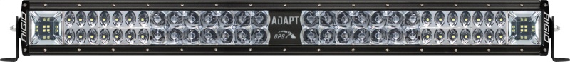 The RIGID Adapt E-Series LED Light Bar features the same style and construction as RIGIDs legendary E-Series, from the high-strength aluminum heat sink to the unbreakable polycarbonate lens. On the inside, however, the Adapt E-Series contains cutting-edge technology. The Adapt E-Series takes off-road lighting performance to a whole new level with two layers of adaptive response to your vehicle and driving conditions. The first layer of adaptive response is RIGIDs new Active Power Management (APM) system which continuously monitors input voltage to determine the status of the vehicles electrical system. If the voltage is stable, the Adapt E-Series will continue to utilize all available power to give you the most output possible. If the available voltage to the light begins to drop due to insufficient power, RIGIDs APM system will gradually reduce the lights power consumption until the vehicles voltage stabilizes. The second layer of adaptive response featured in the Adapt E-Series is RIGIDs proven Active View Technology. This technology uses an internal GPS module to determine the vehicles speed, allowing the Adapt E-Series to properly distribute all available power among three unique optic zones. Utilizing the three zones allows the Active View Technology to create the most optimal beam pattern to suit the vehicles speed. As the vehicles speed changes, power is dynamically routed through various optics. Utilizing scene optics for low speed, driving optics for moderate speed and spot optics for high speed driving. Rather than cycling between pre-set modes, power is transferred gradually between optic zones showcasing the beam transitions. This allows for seamless transition between beam patterns offered in the Adapt E-Series making it easier than ever to Own The Night. Professional Installation Recommended, RIGID Adapt