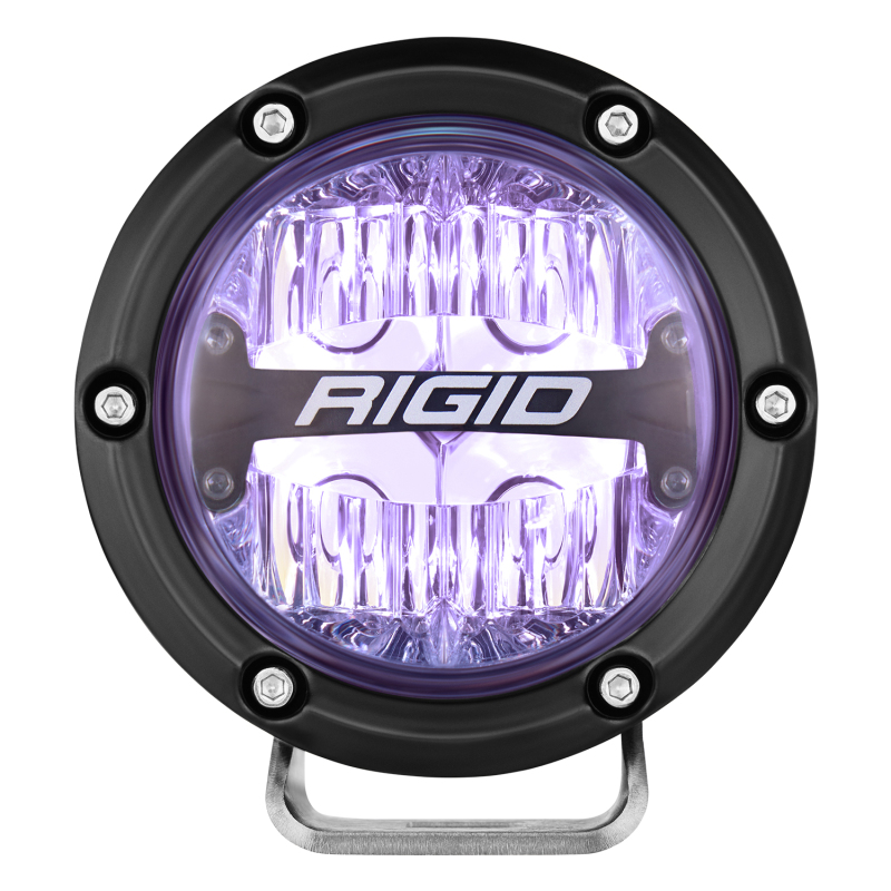 RIGID 360-SERIES 4 INCH ROUND LED OFF-ROAD DRIVE BEAM PATTERN FOR MODERATE SPEED (20-50 MPH) AND RGBW BACKLIGHT PAIR