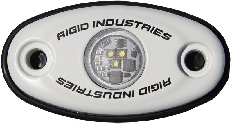 RIGIDs A-Series LED Accessory Light is a universal light that can be used just about anywhere. Vehicle cabs, boat cabins, work vehicle beds, under the hood of a vehicle and trunks are just a few of the places where the A-Series can provide handy bright lighting in otherwise dark environments. The A-Series has a durable compact aluminum housing and includes rubber flat-mount, 3M VHB permanent tape, 2 way pad for flat mounting, and radius tube-mount adapters, which provide side or bottom wire exits to accommodate different applications. It is lightweight, waterproof, and available in a variety of different LED colors in high and low power versions. The versatility of the A-Series makes it an easy installation on almost anything. Own The Night with RIGIDs compact A-Series LED lights. Professional Installation Recommended, RIGID A-Series, Rock Light, Boat Light, Back Up Light