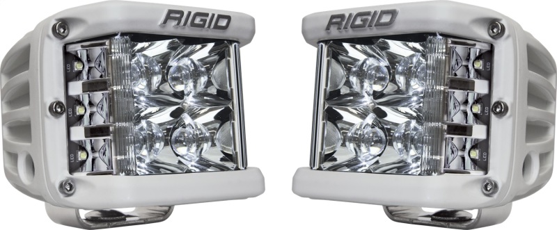 One of RIGIDs most versatile, compact lighting solutions just got better with the RIGID D-SS PRO, Dually-Side Shooter LED pod light. Perfect for any application that requires a wide spread beam, including A-Pillars, fog Lights, and motorcycle applications. The D-SS PRO incorporates powerful optics and recently improved LED technology for greater output with the added benefit of additional LEDs aimed to the side for a much broader beam. The D-SS PRO packs a powerful punch with up to 102 percent more raw lumens. The D-SS PRO feature 120 degrees of horizontal lighting coverage. The main forward-facing LEDs are available with RIGIDs advanced Spot, Flood, or Driving optics, so there is a D-SS PRO lighting solution for nearly any application. The D-SS PRO LED lights are available in pairs with three side-shooting LEDs on one side of each light, or in single applications with a pair of side-shooting LEDs on both sides of the light. Only RIGID provides a broad, powerful lighting solution in such a compact package. Own The Night with RIGIDs original side shooter LED light.