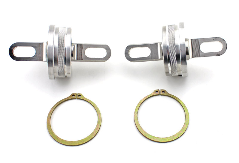 Hyundai Veloster N Rear Trailing Arm Monoball Bushings replace the stock flexible rubber bushings with low-friction articulating spherical bearings, eliminating bushing flex and reducing friction. This maintains optimum suspension geometry under load, to improve handling and feedback and greatly improves stability under hard cornering and acceleration. Slotted chassis mounting tabs allow for a wide range of camber and toe adjustment without inducing bind. SPL Parts Spherical Bushings feature massive FK Racing Bearings with a self-lubricating Teflon liner for long life and maximum performance. Highly precise (machined to 1/1000th inch) CNC machined 6061-T6 Billet Aluminum bearing shell and stainless steel sleeves provide an accurate fit. Sold as a pair. Made in the USA. Applications: 2019 + Hyundai Veloster N (JSN)
