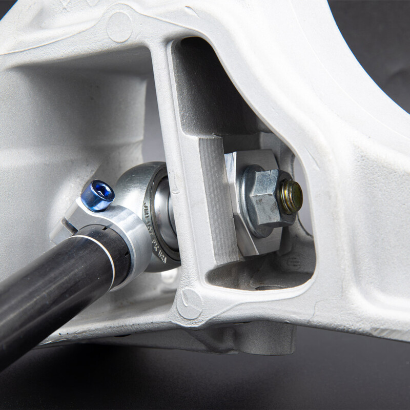 Large toe adjustment range. Eliminates unwanted toe bump due to bushing deflection and improper kinematics.