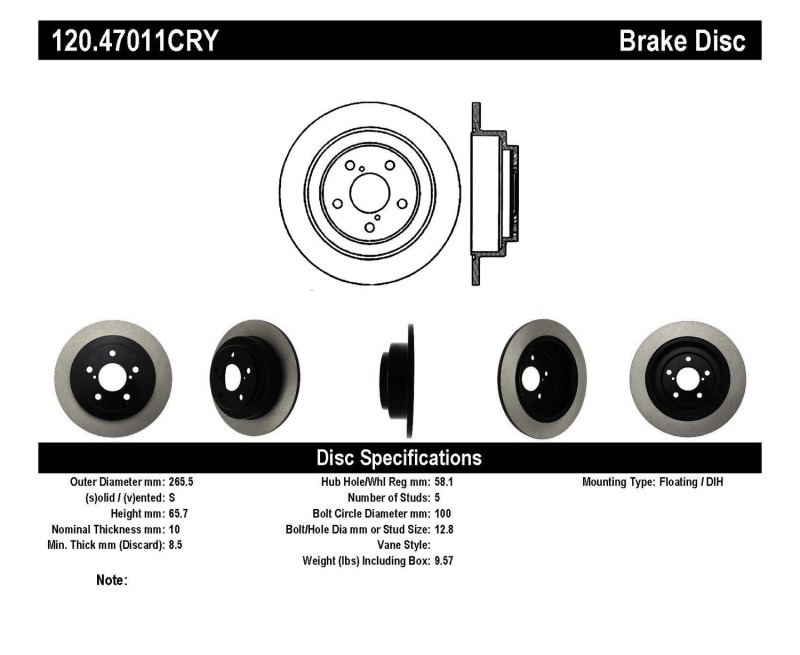 Stoptech 02-05 WRX Rear CRYO-STOP Rotor