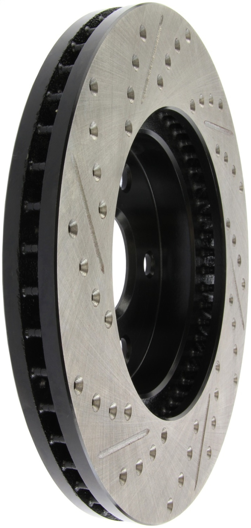 StopTech Drilled and Slotted Sport Rotors are 1-piece direct replacement brake discs for factory brake systems and stock calipers that look great behind your wheels * and offer significantly improved braking performance. The unique cross-drilling and slotting aids with heat and brake dust dispersal; prevents glazing of the pads; adds bite and improves wet and dry braking performance. Built to last; the black e-coating provides protection from corrosion and the high carbon metallurgy (in most applications) offers quieter operation; better crack resistance and increased performance.
