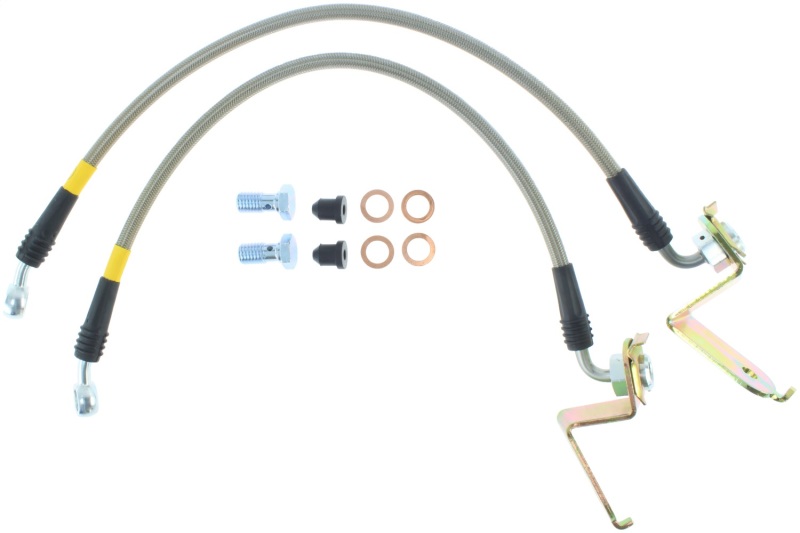 StopTech Stainless Steel Braided Brake Lines provide a quicker; firmer; more consistent pedal response by maintaining consistent brake pressure. Additionally; stainless steel lines provide precision brake modulation; especially during threshold braking. The improvement in pedal feel is more dramatic on older vehicles where the factory rubber line may have softened and swelled due to age.