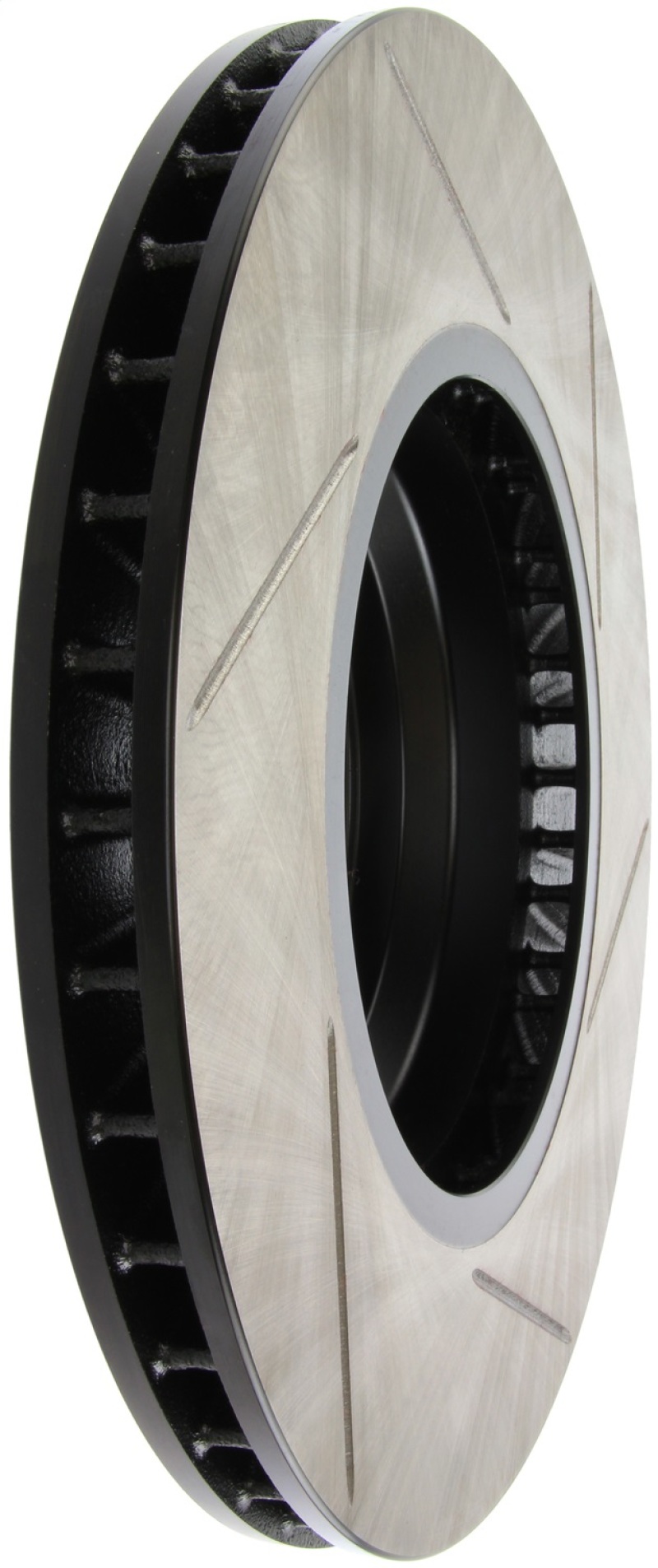 StopTech Slotted Sport Rotors are 1-piece direct replacement brake discs for factory brake systems and stock calipers that look great behind your wheels * and offer significantly improved braking performance. The unique slotting aids with heat and brake dust dispersal; prevents glazing of the pads; adds bite and improves wet and dry braking performance. Built to last; the black e-coating provides protection from corrosion and the high carbon metallurgy (in most applications) offers quieter operation; better crack resistance and increased performance.