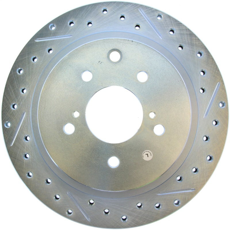 StopTech Drilled and Slotted Sport Rotors are 1-piece direct replacement brake discs for factory brake systems and stock calipers that look great behind your wheels * and offer significantly improved braking performance. The unique cross-drilling and slotting aids with heat and brake dust dispersal; prevents glazing of the pads; adds bite and improves wet and dry braking performance. Built to last; the black e-coating provides protection from corrosion and the high carbon metallurgy (in most applications) offers quieter operation; better crack resistance and increased performance.