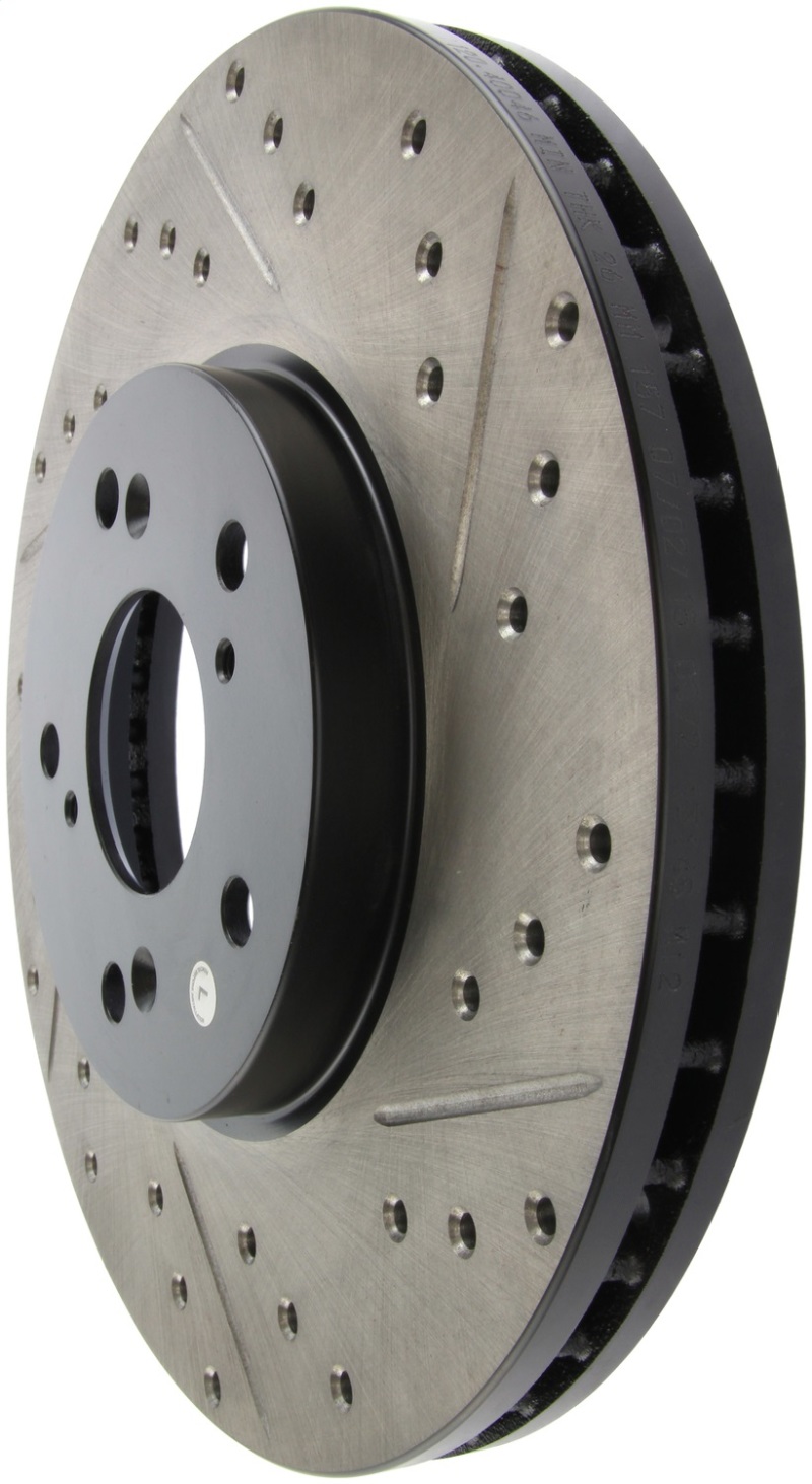 StopTech Drilled and Slotted Sport Rotors are 1-piece direct replacement brake discs for factory brake systems and stock calipers that look great behind your wheels * and offer significantly improved braking performance. The unique cross-drilling and slotting aids with heat and brake dust dispersal; prevents glazing of the pads; adds bite and improves wet and dry braking performance. Built to last; the black e-coating provides protection from corrosion and the high carbon metallurgy (in most applications) offers quieter operation; better crack resistance and increased performance. Premium e-coated rotor with advanced metallurgy that greatly reduces pad squeal. Especially effective with higher friction; European style brake pad compounds. Drilled & Slotted for increased bite; improved looks and better performance Premium e-coated rotor with advanced metallurgy that greatly reduces pad squeal; Especially effective with higher friction; European style brake pad compounds; Added Molybdenum and Chromium to resist rotor cracking 2001 - 2003 Acura CL, 2001 - 2006 Acura MDX, 1999 - 2008 Acura TL, 2004 - 2014 Acura TSX, 2003 - 2012 Honda Accord, 1999 - 2004 Honda Odyssey, 2003 - 2008 Honda Pilot