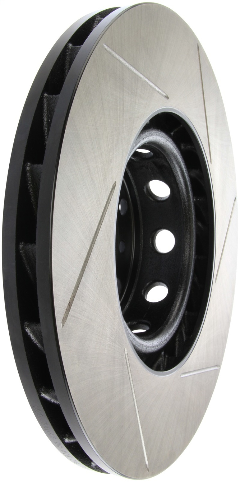 StopTech Slotted Sport Rotors are 1-piece direct replacement brake discs for factory brake systems and stock calipers that look great behind your wheels * and offer significantly improved braking performance. The unique slotting aids with heat and brake dust dispersal; prevents glazing of the pads; adds bite and improves wet and dry braking performance. Built to last; the black e-coating provides protection from corrosion and the high carbon metallurgy (in most applications) offers quieter operation; better crack resistance and increased performance.
