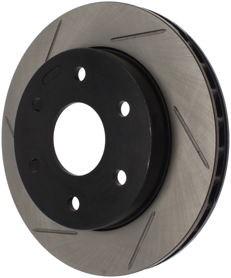 StopTech Slotted Sport Rotors are 1-piece direct replacement brake discs for factory brake systems and stock calipers that look great behind your wheels * and offer significantly improved braking performance. The unique slotting aids with heat and brake dust dispersal; prevents glazing of the pads; adds bite and improves wet and dry braking performance. Built to last; the black e-coating provides protection from corrosion and the high carbon metallurgy (in most applications) offers quieter operation; better crack resistance and increased performance.