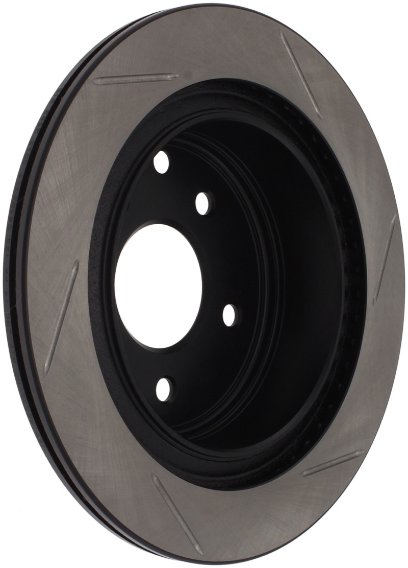 StopTech Slotted Sport Rotors are 1-piece direct replacement brake discs for factory brake systems and stock calipers that look great behind your wheels * and offer significantly improved braking performance. The unique slotting aids with heat and brake dust dispersal; prevents glazing of the pads; adds bite and improves wet and dry braking performance. Built to last; the black e-coating provides protection from corrosion and the high carbon metallurgy (in most applications) offers quieter operation; better crack resistance and increased performance.