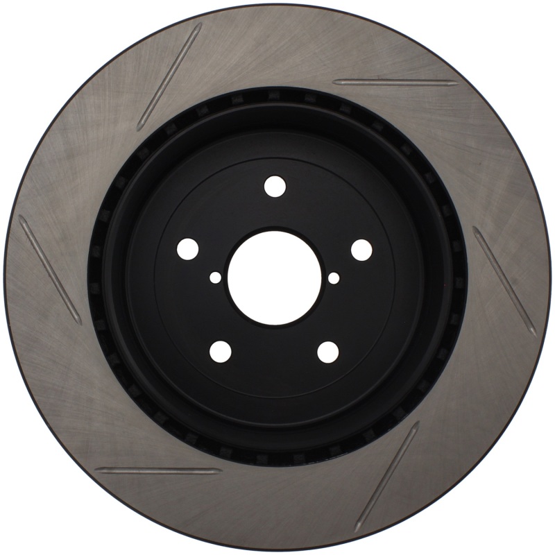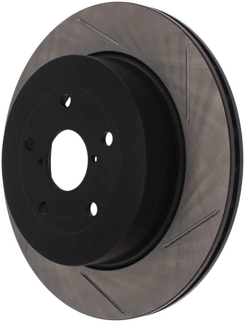 StopTech Slotted Sport Rotors are 1-piece direct replacement brake discs for factory brake systems and stock calipers that look great behind your wheels * and offer significantly improved braking performance. The unique slotting aids with heat and brake dust dispersal; prevents glazing of the pads; adds bite and improves wet and dry braking performance. Built to last; the black e-coating provides protection from corrosion and the high carbon metallurgy (in most applications) offers quieter operation; better crack resistance and increased performance.