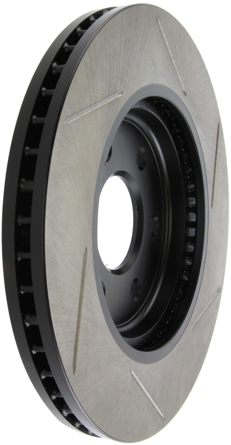 StopTech Slotted Sport Rotors are 1-piece direct replacement brake discs for factory brake systems and stock calipers that look great behind your wheels * and offer significantly improved braking performance. The unique slotting aids with heat and brake dust dispersal; prevents glazing of the pads; adds bite and improves wet and dry braking performance. Built to last; the black e-coating provides protection from corrosion and the high carbon metallurgy (in most applications) offers quieter operation; better crack resistance and increased performance.