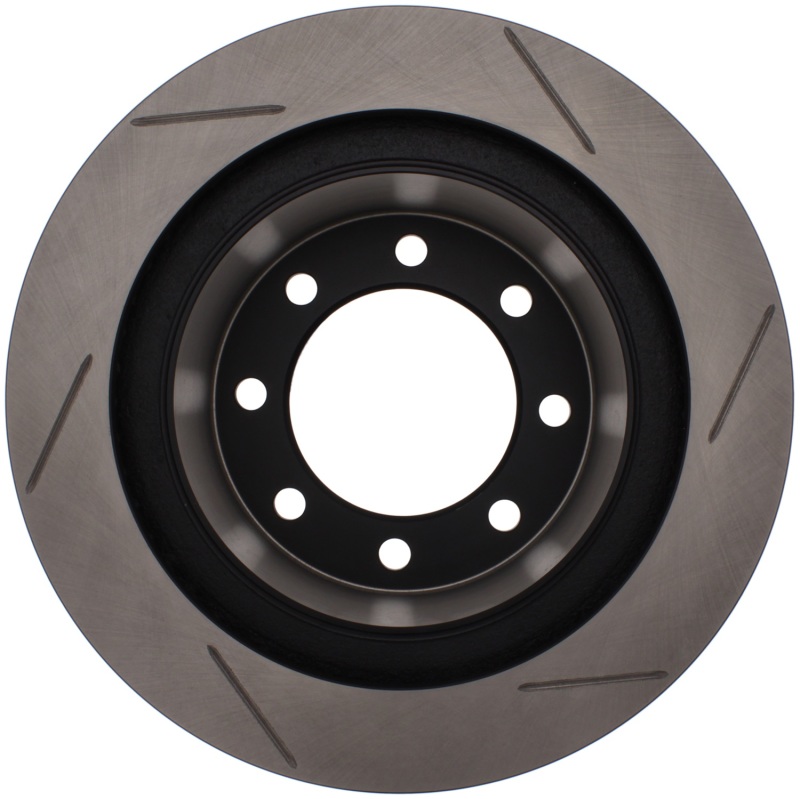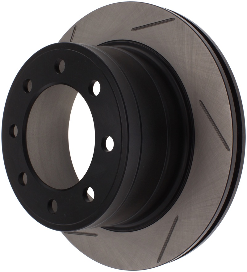 StopTech Slotted Sport Rotors are 1-piece direct replacement brake discs for factory brake systems and stock calipers that look great behind your wheels * and offer significantly improved braking performance. The unique slotting aids with heat and brake dust dispersal; prevents glazing of the pads; adds bite and improves wet and dry braking performance. Built to last; the black e-coating provides protection from corrosion and the high carbon metallurgy (in most applications) offers quieter operation; better crack resistance and increased performance.