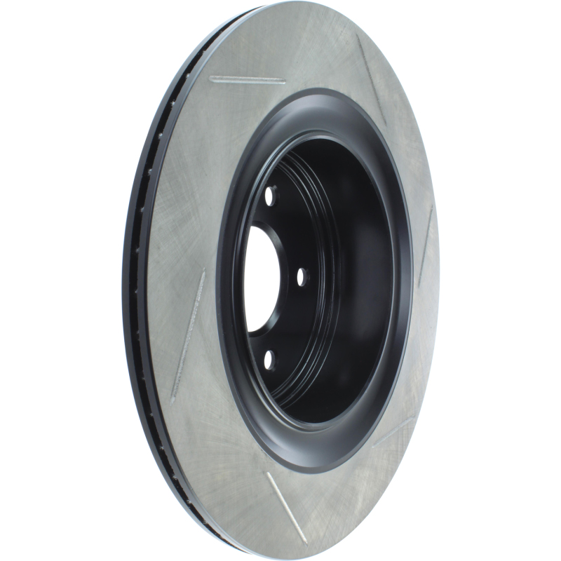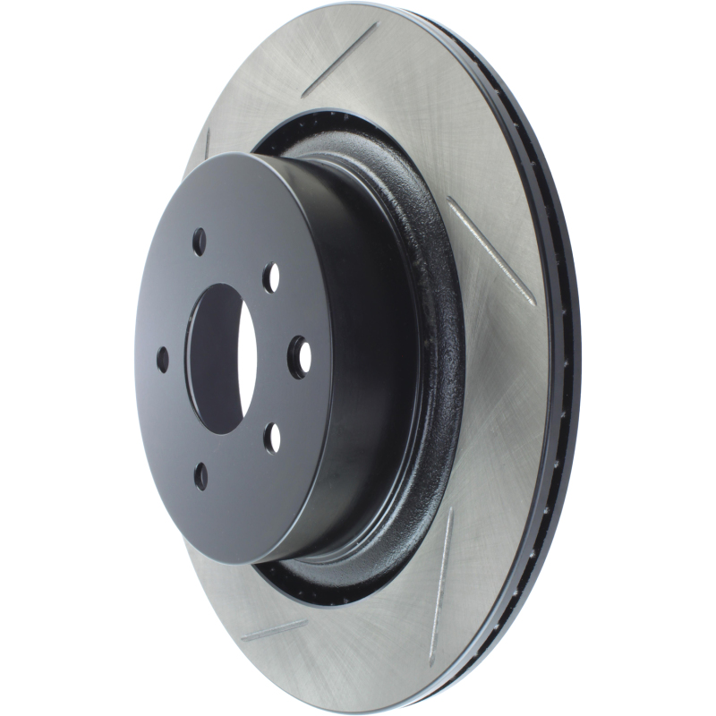 StopTech Slotted Sport Rotors are 1-piece direct replacement brake discs for factory brake systems and stock calipers that look great behind your wheels a** and offer significantly improved braking performance. The unique slotting aids with heat and brake dust dispersal, prevents glazing of the pads, adds bite and improves wet and dry braking performance. Built to last, the black e-coating provides protection from corrosion and the high carbon metallurgy (in most applications) offers quieter operation, better crack resistance and increased performance.