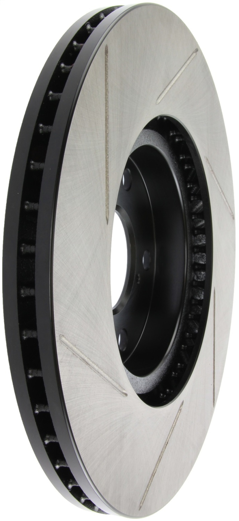 StopTech Slotted Sport Rotors are 1-piece direct replacement brake discs for factory brake systems and stock calipers that look great behind your wheels * and offer significantly improved braking performance. The unique slotting aids with heat and brake dust dispersal; prevents glazing of the pads; adds bite and improves wet and dry braking performance. Built to last; the black e-coating provides protection from corrosion and the high carbon metallurgy (in most applications) offers quieter operation; better crack resistance and increased performance.