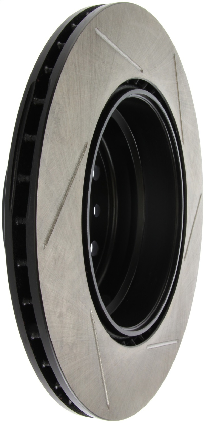 StopTech Slotted Sport Rotors are 1-piece direct replacement brake discs for factory brake systems and stock calipers that look great behind your wheels * and offer significantly improved braking performance. The unique slotting aids with heat and brake dust dispersal; prevents glazing of the pads; adds bite and improves wet and dry braking performance. Built to last; the black e-coating provides protection from corrosion and the high carbon metallurgy (in most applications) offers quieter operation; better crack resistance and increased performance.
