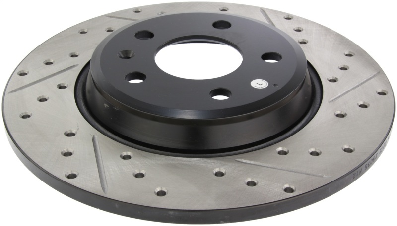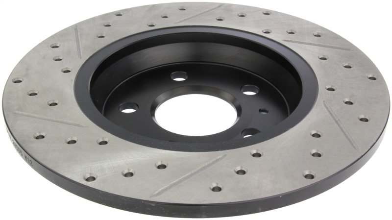 StopTech Drilled and Slotted Sport Rotors are 1-piece direct replacement brake discs for factory brake systems and stock calipers that look great behind your wheels * and offer significantly improved braking performance. The unique cross-drilling and slotting aids with heat and brake dust dispersal; prevents glazing of the pads; adds bite and improves wet and dry braking performance. Built to last; the black e-coating provides protection from corrosion and the high carbon metallurgy (in most applications) offers quieter operation; better crack resistance and increased performance.