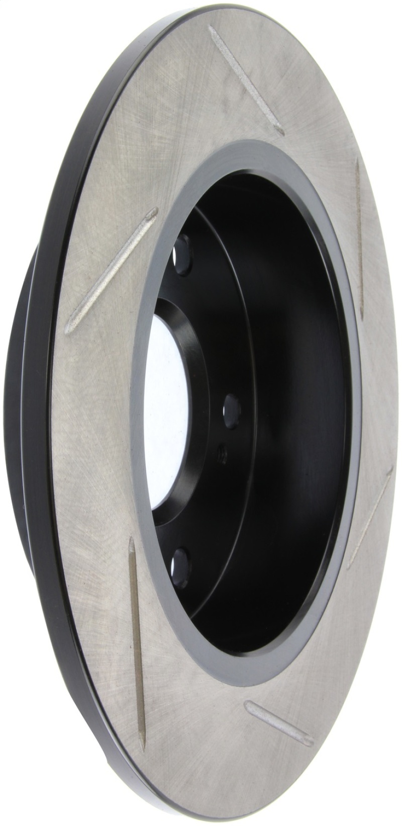 StopTech Slotted Sport Rotors are 1-piece direct replacement brake discs for factory brake systems and stock calipers that look great behind your wheels * and offer significantly improved braking performance. The unique slotting aids with heat and brake dust dispersal; prevents glazing of the pads; adds bite and improves wet and dry braking performance. Built to last; the black e-coating provides protection from corrosion and the high carbon metallurgy (in most applications) offers quieter operation; better crack resistance and increased performance.