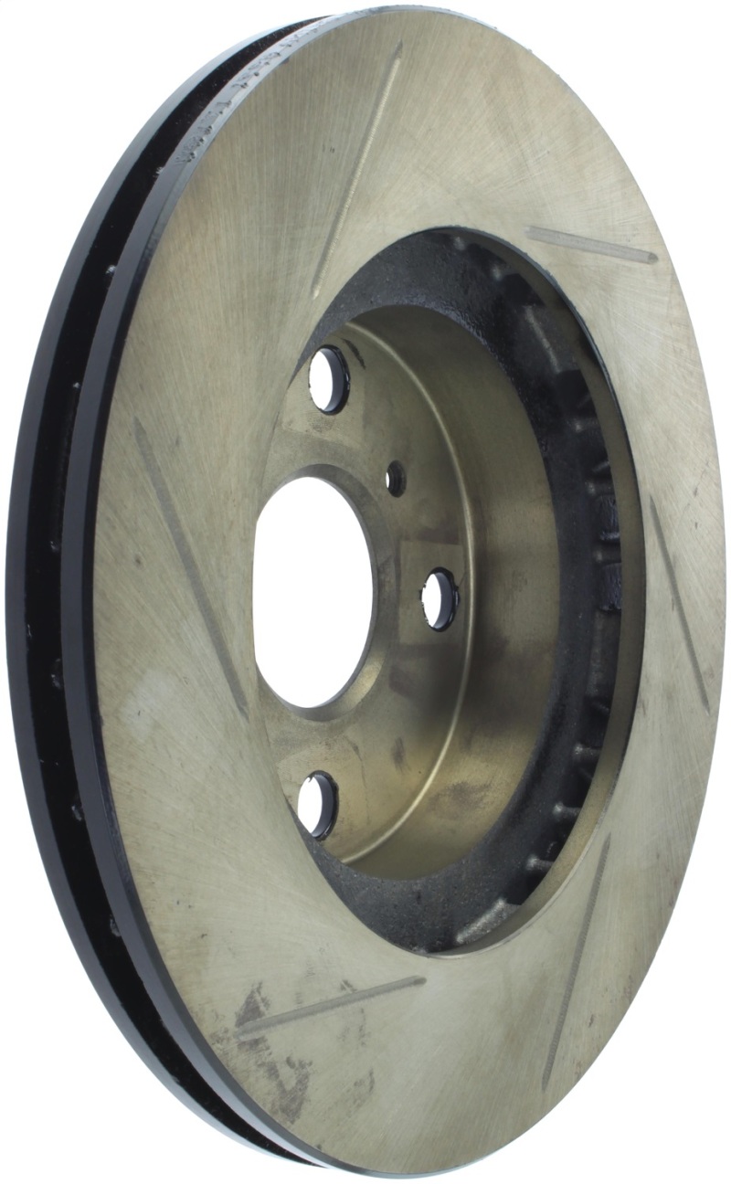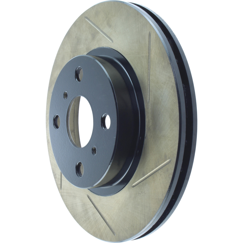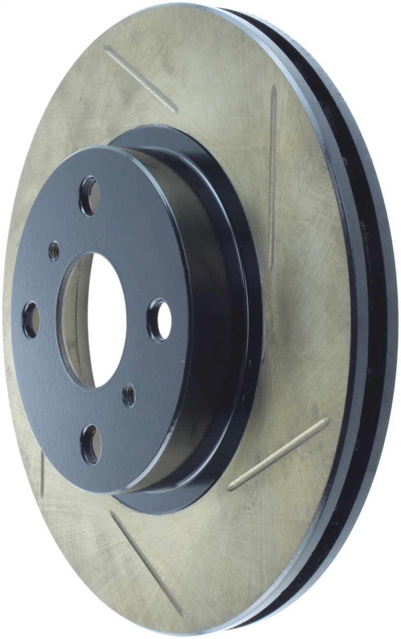 StopTech Slotted Sport Rotors are 1-piece direct replacement brake discs for factory brake systems and stock calipers that look great behind your wheels * and offer significantly improved braking performance. The unique slotting aids with heat and brake dust dispersal; prevents glazing of the pads; adds bite and improves wet and dry braking performance. Built to last; the black e-coating provides protection from corrosion and the high carbon metallurgy (in most applications) offers quieter operation; better crack resistance and increased performance.
