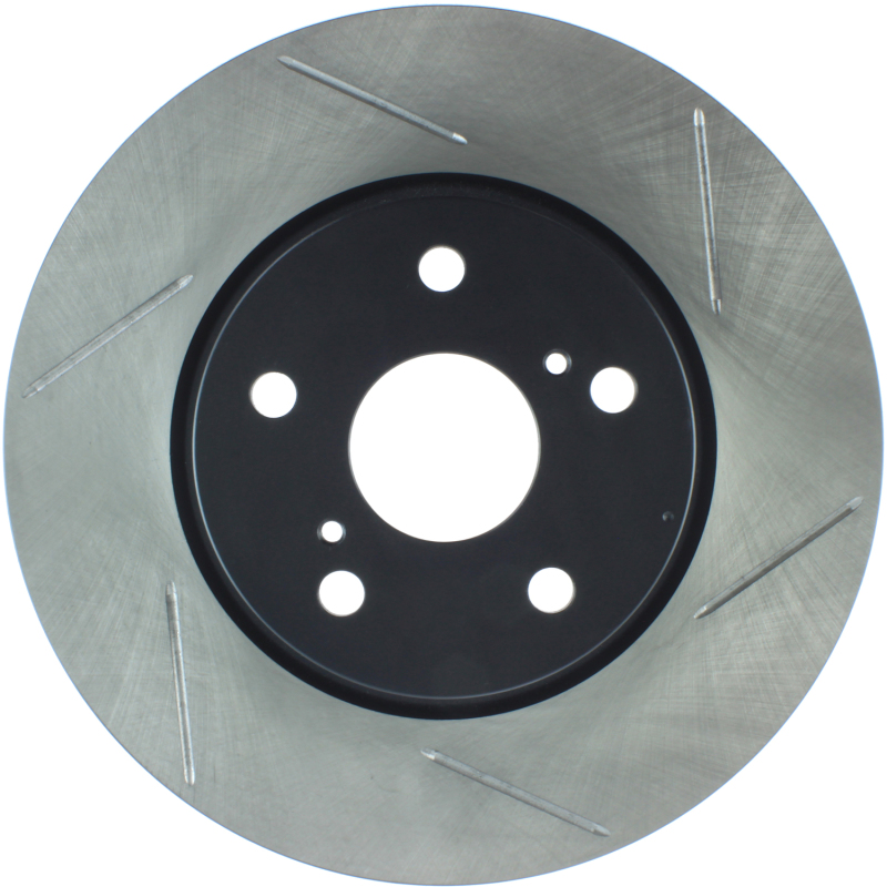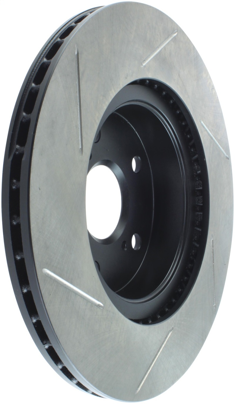 StopTech Slotted Sport Rotors are 1-piece direct replacement brake discs for factory brake systems and stock calipers that look great behind your wheels * and offer significantly improved braking performance. The unique slotting aids with heat and brake dust dispersal; prevents glazing of the pads; adds bite and improves wet and dry braking performance. Built to last; the black e-coating provides protection from corrosion and the high carbon metallurgy (in most applications) offers quieter operation; better crack resistance and increased performance.