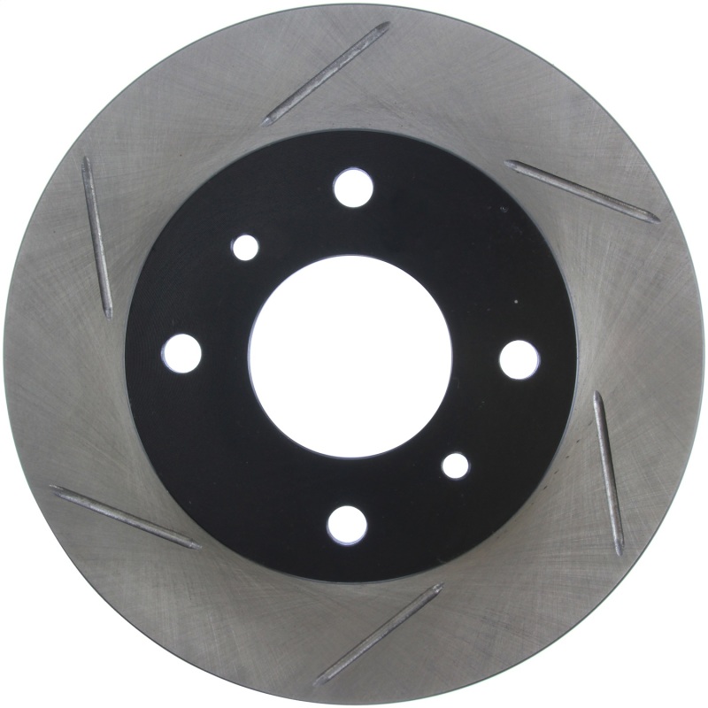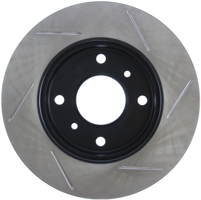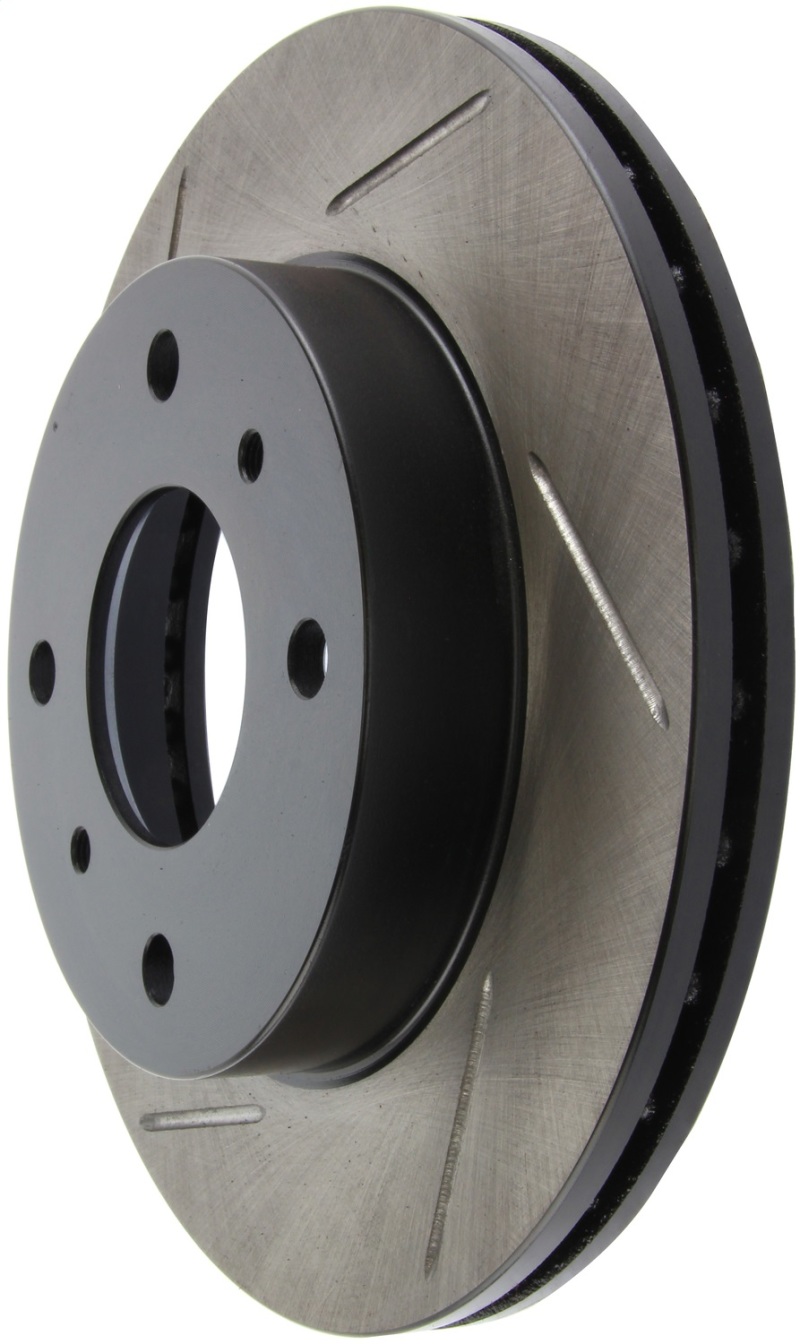 StopTech Slotted Sport Rotors are 1-piece direct replacement brake discs for factory brake systems and stock calipers that look great behind your wheels * and offer significantly improved braking performance. The unique slotting aids with heat and brake dust dispersal; prevents glazing of the pads; adds bite and improves wet and dry braking performance. Built to last; the black e-coating provides protection from corrosion and the high carbon metallurgy (in most applications) offers quieter operation; better crack resistance and increased performance.