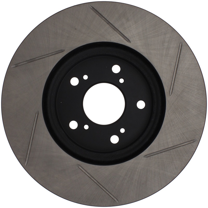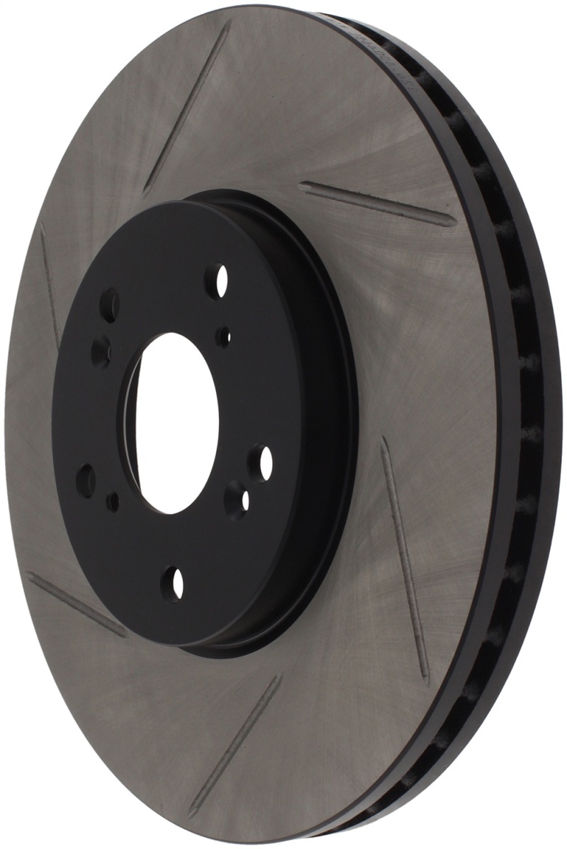StopTech Slotted Sport Rotors are 1-piece direct replacement brake discs for factory brake systems and stock calipers that look great behind your wheels * and offer significantly improved braking performance. The unique slotting aids with heat and brake dust dispersal; prevents glazing of the pads; adds bite and improves wet and dry braking performance. Built to last; the black e-coating provides protection from corrosion and the high carbon metallurgy (in most applications) offers quieter operation; better crack resistance and increased performance.