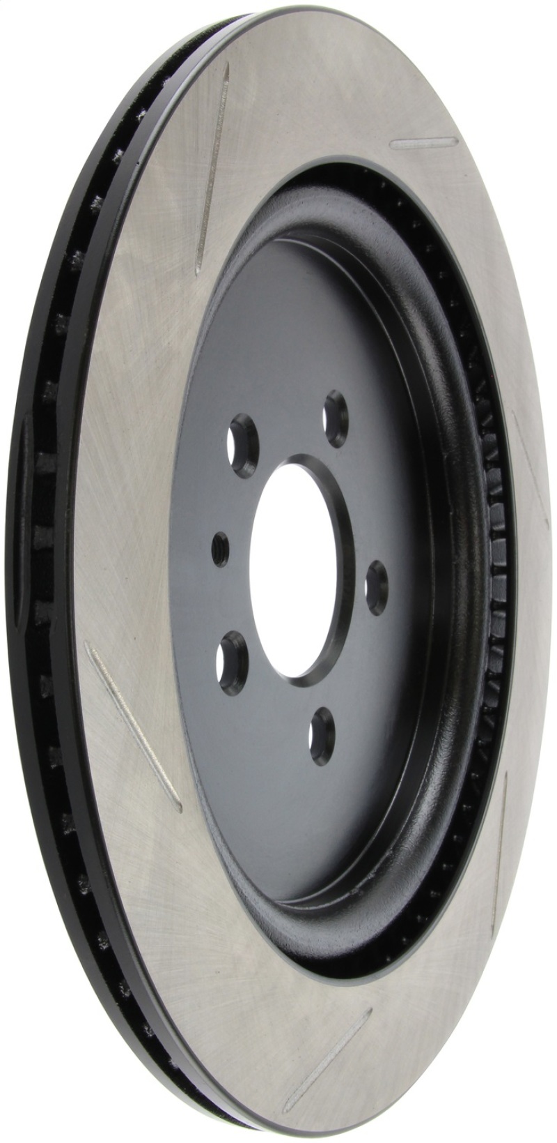 StopTech Slotted Sport Rotors are 1-piece direct replacement brake discs for factory brake systems and stock calipers that look great behind your wheels * and offer significantly improved braking performance. The unique slotting aids with heat and brake dust dispersal; prevents glazing of the pads; adds bite and improves wet and dry braking performance. Built to last; the black e-coating provides protection from corrosion and the high carbon metallurgy (in most applications) offers quieter operation; better crack resistance and increased performance.