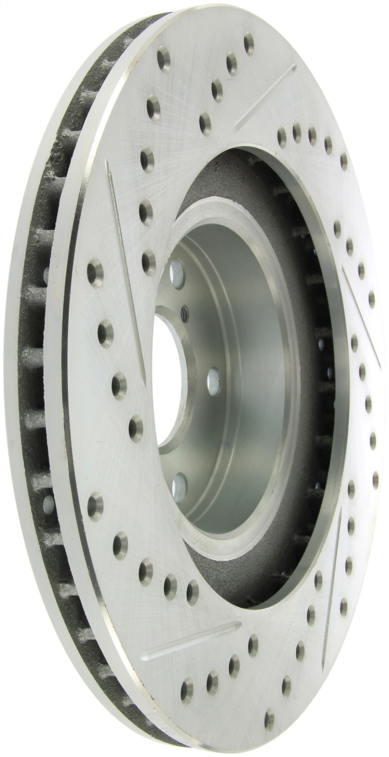 StopTech Drilled and Slotted Sport Rotors are 1-piece direct replacement brake discs for factory brake systems and stock calipers that look great behind your wheels * and offer significantly improved braking performance. The unique cross-drilling and slotting aids with heat and brake dust dispersal; prevents glazing of the pads; adds bite and improves wet and dry braking performance. Built to last; the black e-coating provides protection from corrosion and the high carbon metallurgy (in most applications) offers quieter operation; better crack resistance and increased performance.