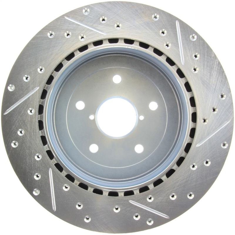 StopTech Drilled and Slotted Sport Rotors are 1-piece direct replacement brake discs for factory brake systems and stock calipers that look great behind your wheels * and offer significantly improved braking performance. The unique cross-drilling and slotting aids with heat and brake dust dispersal; prevents glazing of the pads; adds bite and improves wet and dry braking performance. Built to last; the black e-coating provides protection from corrosion and the high carbon metallurgy (in most applications) offers quieter operation; better crack resistance and increased performance.