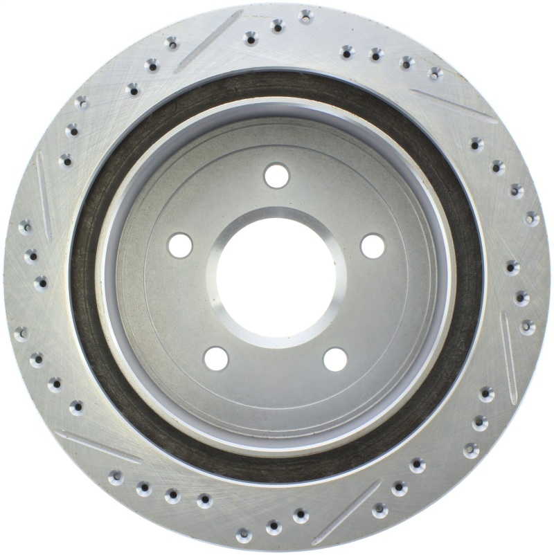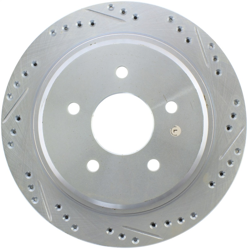 StopTech Drilled and Slotted Sport Rotors are 1-piece direct replacement brake discs for factory brake systems and stock calipers that look great behind your wheels * and offer significantly improved braking performance. The unique cross-drilling and slotting aids with heat and brake dust dispersal; prevents glazing of the pads; adds bite and improves wet and dry braking performance. Built to last; the black e-coating provides protection from corrosion and the high carbon metallurgy (in most applications) offers quieter operation; better crack resistance and increased performance.