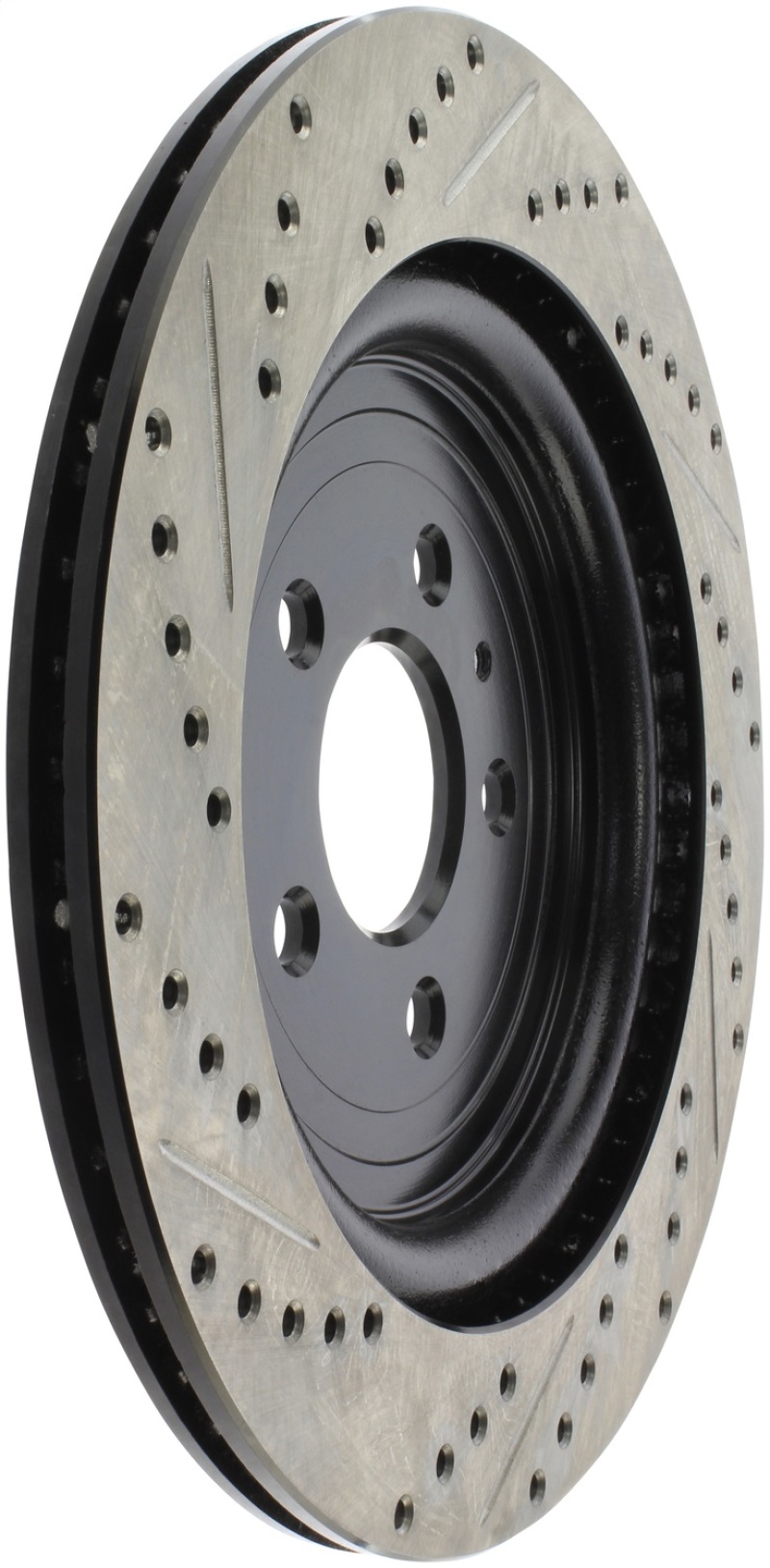 StopTech Drilled and Slotted Sport Rotors are 1-piece direct replacement brake discs for factory brake systems and stock calipers that look great behind your wheels * and offer significantly improved braking performance. The unique cross-drilling and slotting aids with heat and brake dust dispersal; prevents glazing of the pads; adds bite and improves wet and dry braking performance. Built to last; the black e-coating provides protection from corrosion and the high carbon metallurgy (in most applications) offers quieter operation; better crack resistance and increased performance.
