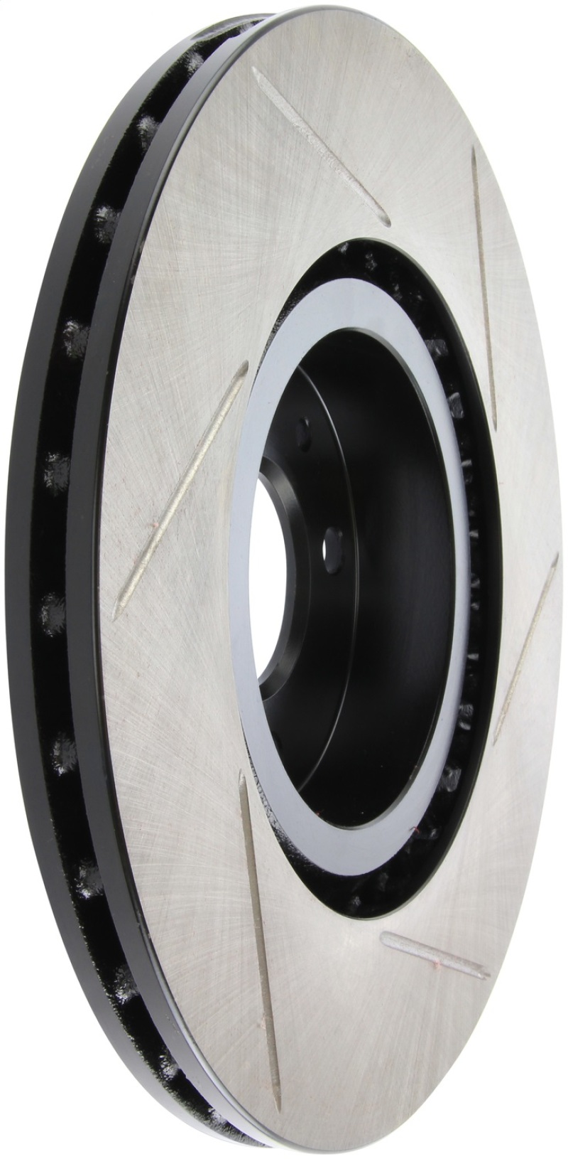 StopTech Slotted Sport Rotors are 1-piece direct replacement brake discs for factory brake systems and stock calipers that look great behind your wheels * and offer significantly improved braking performance. The unique slotting aids with heat and brake dust dispersal; prevents glazing of the pads; adds bite and improves wet and dry braking performance. Built to last; the black e-coating provides protection from corrosion and the high carbon metallurgy (in most applications) offers quieter operation; better crack resistance and increased performance.