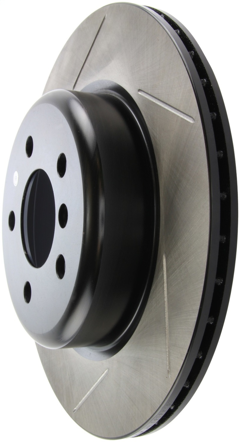 StopTech Slotted Sport Rotors are 1-piece direct replacement brake discs for factory brake systems and stock calipers that look great behind your wheels * and offer significantly improved braking performance. The unique slotting aids with heat and brake dust dispersal; prevents glazing of the pads; adds bite and improves wet and dry braking performance. Built to last; the black e-coating provides protection from corrosion and the high carbon metallurgy (in most applications) offers quieter operation; better crack resistance and increased performance.