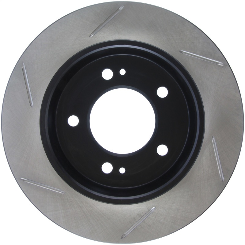 StopTech Slotted Sport Rotors are 1-piece direct replacement brake discs for factory brake systems and stock calipers that look great behind your wheels * and offer significantly improved braking performance. The unique slotting aids with heat and brake dust dispersal, prevents glazing of the pads, adds bite and improves wet and dry braking performance. Built to last, the black e-coating provides protection from corrosion and the high carbon metallurgy (in most applications) offers quieter operation, better crack resistance and increased performance.
