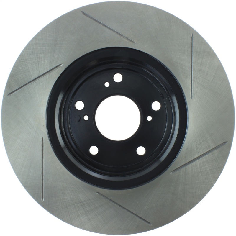 StopTech Slotted Sport Rotors are 1-piece direct replacement brake discs for factory brake systems and stock calipers that look great behind your wheels * and offer significantly improved braking performance. The unique slotting aids with heat and brake dust dispersal; prevents glazing of the pads; adds bite and improves wet and dry braking performance. Built to last; the black e-coating provides protection from corrosion and the high carbon metallurgy (in most applications) offers quieter operation; better crack resistance and increased performance.