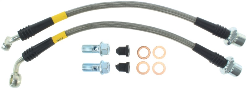 StopTech Stainless Steel Braided Brake Lines provide a quicker; firmer; more consistent pedal response by maintaining consistent brake pressure. Additionally; stainless steel lines provide precision brake modulation; especially during threshold braking. The improvement in pedal feel is more dramatic on older vehicles where the factory rubber line may have softened and swelled due to age.