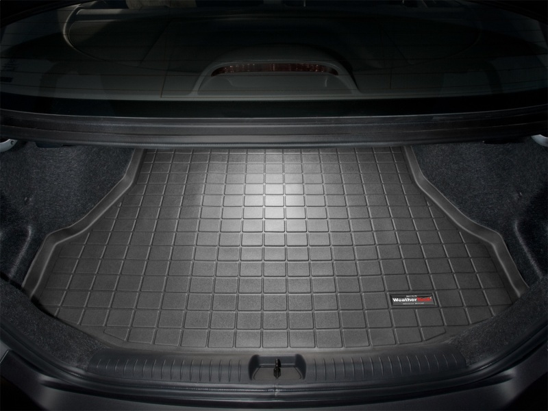WeatherTech Cargo Liners provide complete trunk - cargo area protection. Our cargo liners are computer designed to fit your vehicle and have a raised lip to keep spills, dirt and grease off your vehicles interior, protecting your carpeting from normal wear and tear. Made from a proprietary custom blended TPO (thermopolyolefin) that is not only wear resistant, but also remains flexible under temperature extremes. The WeatherTech Cargo Liner features a textured finish which helps to keep cargo from shifting, and is perfect for hauling just about anything. Available in three colors, Black, Tan or Grey. Available for car trunks, SUVs and minivans. WeatherTech Bumper Protector is a great addition to your Cargo Liner to help protect the surface of your vehicle's bumper from dings and scratches when loading or unloading personal items or pets. The Bumper Protector is made from highly durable vinyl fabric that easily snaps onto your Cargo Liner by stainless, rust resistant snaps. The WeatherTech Bumper Protector comes in two sizes: 30 in. long x 30 in. wide and 30 in. long x 40 in. wide. Bumper Protectors are vehicle specific so the correct size option will be shown for your vehicle. Cargo Liner; Black;