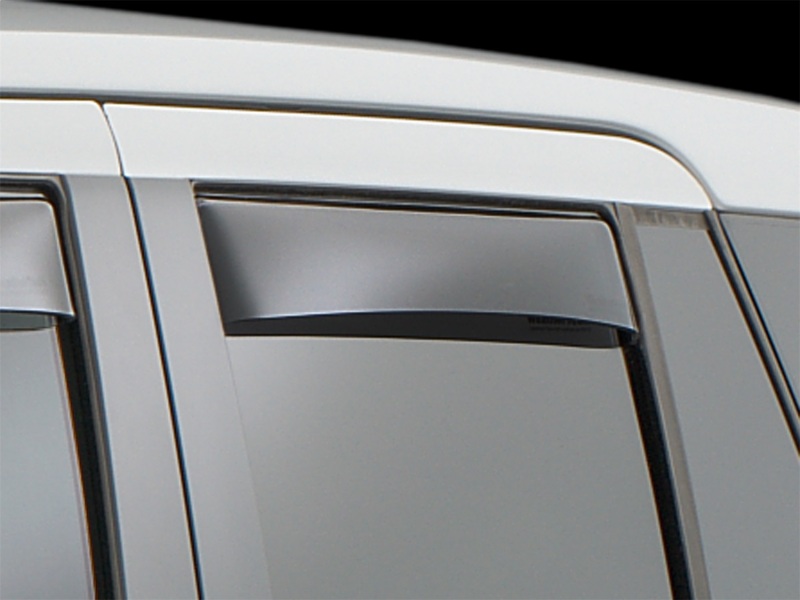 WeatherTech® Side Window Deflectors offer you fresh air enjoyment with an original equipment look. They are crafted in Germany from the finest 3mm lightly-tinted acrylic material available. Installation is quick and easy, with no exterior tape needed. WeatherTech® Side Window Deflectors are precision-machined to perfectly fit your vehicle. These low profile window deflectors help to reduce wind noise and allow interior heat to escape. Also available in dark tint for most vehicles. 3 year warranty. Side Window Deflector; Rear; Dark Tint;