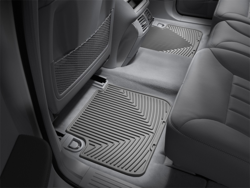 The WeatherTech All-Weather Floor Mats have deeply sculpted channels designed to trap water, road salt, mud and sand. They won't curl, crack or harden in sub-zero weather. Our All-Weather Floor Mats also have anti-skid ridges to prevent shifting in your vehicle and come with a protective, non-stick finish to make cleanup quick and easy. The All-Weather Floor Mats are made using advanced rubber-like, Thermoplastic Elastomer (TPE) compound making it both soft and durable. All Weather Floor Mats; Gray; 2nd Row;