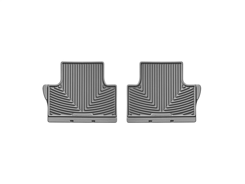 The WeatherTech All-Weather Floor Mats have deeply sculpted channels designed to trap water, road salt, mud and sand. They won't curl, crack or harden in sub-zero weather. Our All-Weather Floor Mats also have anti-skid ridges to prevent shifting in your vehicle and come with a protective, non-stick finish to make cleanup quick and easy. The All-Weather Floor Mats are made using advanced rubber-like, Thermoplastic Elastomer (TPE) compound making it both soft and durable. All Weather Floor Mats; Gray; Rear;