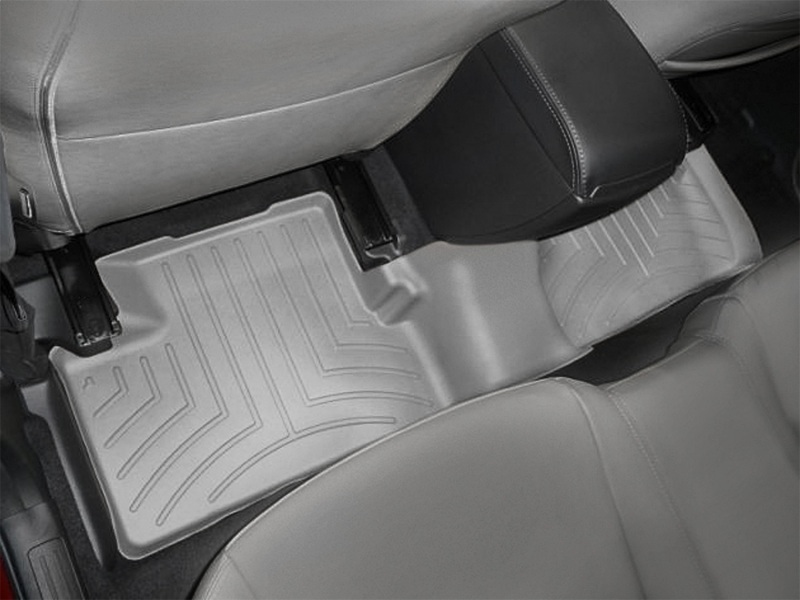 The WeatherTech FloorLiner DigitalFit accurately and completely lines the interior carpet giving "absolute interior protection". Digital laser measurements of interior surfaces offer a consistently perfect fit. A patent pending HighDensity TriExtruded (HDTE) material allows for a rigid core for strength while offering surface friction to the carpet, as well as tactile feel to the surface. Advanced surfacing creates channels that carry fluids and debris to a lower reservoir with further channeling to help minimize fluid movement while driving. Once fluids become trapped in the reservoir, away from shoes and clothing, they are easily removed from the WeatherTech FloorLiner DigitalFit over the door sill. No muss-no fuss. 3 year warranty. FloorLiner™ DigitalFit®; Gray; Rear;